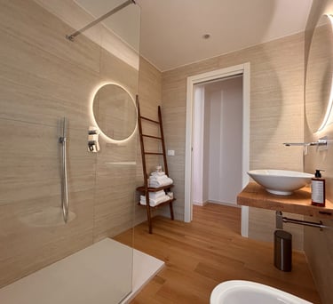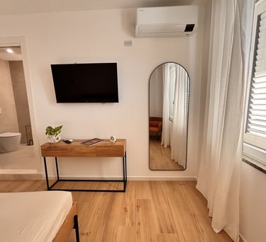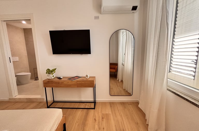 Le nostre camere sono tutte dotate di: comodi letti matrimoniali con doppi cuscini bagno privato aria condizionata/riscaldamento smart tv frigorifero phon free wifi
